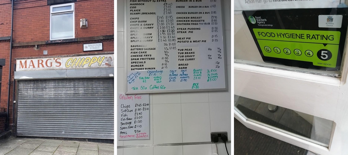 This is a top notch St Helens proper Chippy, no frills just great grub and lovely people behind the counter catering for your every need. Whilst this is a regular stop for our family it was the only Fish n Chip shop we could find for our traditional Fish and Chip Christmas Eve family tea. They must have cleaned up, good on em! Merry Christmas Marg and the Team!